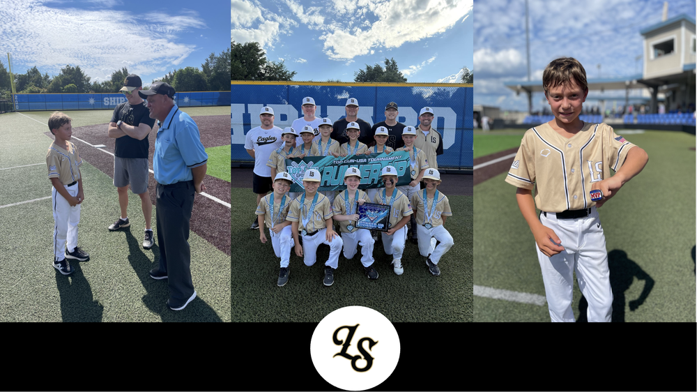 Over the 2025 Memorial Day weekend, Loudoun South's very own 10U Eagles team, led by team manager Brian Triplett, assistant coaches Brandon Reese, Nick Umstead, Michael Funk and Brandon Vaughan, competed in the annual Shipyard Park Memorial Day Tournament located in Charleston SC. The team battled their way to the championship game by leading a massive come from behind victory (0-7) over a very good Rock Solid Blue team. Lead by pitcher #6 Maxwell Vaughan, the Eagles triumphed to a 9-8 victory. The hurler tossed four and two-thirds innings in relief and allowed three hits and one run, while striking out six and walking one and receiving the tournament MVP award. Cooper Reese led Loudoun South with three runs batted in. Finley B, Logan S, Logan U and Graeson F each collected two hits for Loudoun South. Cooper R stole two of the seven bases in the game.